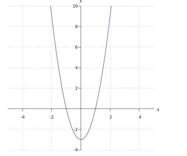 La plus petite valeur de la fonction est #-3# et le graphe augmente indéfiniment par après.