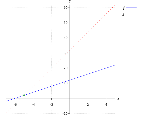 Donc le point d'intersection est: #\rv{-5, 2}#.