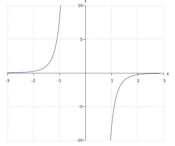 Bekijk de grafiek van een machtsfunctie met negatieve exponent, dit is een functie van de vorm #f(x)=\frac{a}{x^n}#.