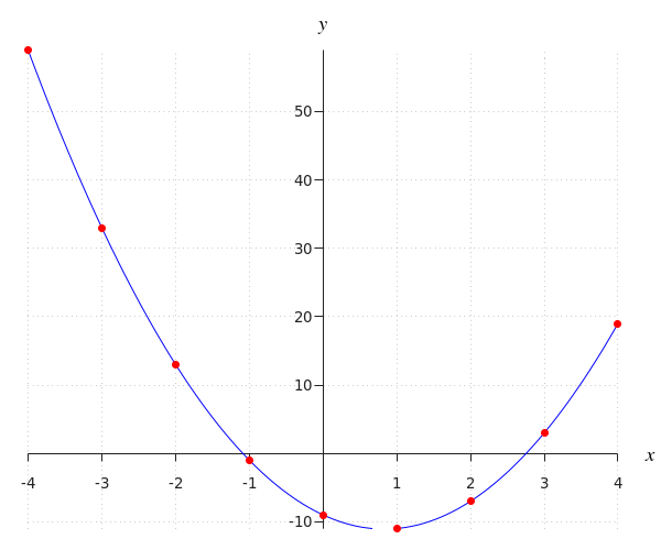 #\boldsymbol{y}# | #59# | #33# | #13# | #-1# | #-9# | #-11# | #-7# | #3# | #19# |