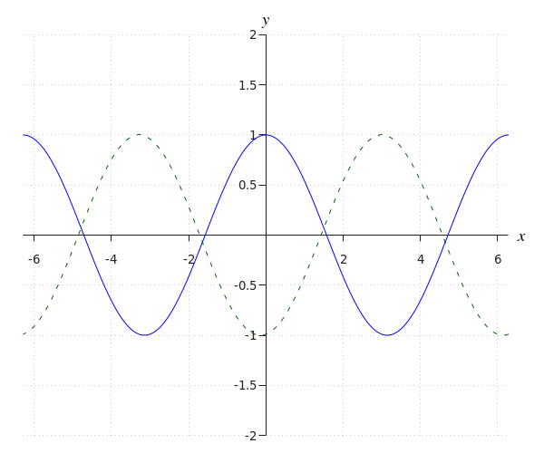 In step 1 we saw that the green graph is obtained by shifting the blue graph to the left by #2#. Hence, we replace al occurences of #x# in te formula of the blue graph #y=\sin(x)# by #x+2#. This gives us the following formula for the green graph: